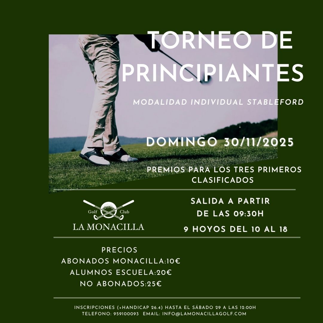 IV TORNEO AJGOLF 22/11/2025 – 22/11/2025 StableforfdAbierto Torneo de Principiantes 30/11/2025 – 30/11/2025 StableforfdAbierto